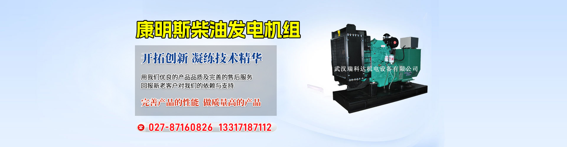 武漢瑞科達(dá)機(jī)電設(shè)備有限公司,是2005年經(jīng)武漢市工商局批準(zhǔn)注冊(cè)成立的專(zhuān)業(yè)機(jī)電電源產(chǎn)品公司,坐落于有九省通衢之稱(chēng)的武漢。公司致力于向客戶(hù)提供專(zhuān)業(yè)的電力應(yīng)用解決方案與技術(shù)服務(wù),靠著合格的產(chǎn)品質(zhì)量保證,完善的售后服務(wù),使公司的知名度迅速提高,業(yè)績(jī)遍及全國(guó)?,F(xiàn)已成為國(guó)內(nèi)外多家渠道商: "東風(fēng)康明斯、重慶康明斯瑞典沃爾沃、珀金斯.勞斯萊斯、韓國(guó)大宇、無(wú)錫萬(wàn)迪動(dòng)力......